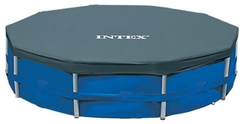 Pokrivalo Intex je narejeno iz umetnih snovi za okrogle bazene. Pokrivalo ima vrv, zavihke in odtok za vodo na sredini.