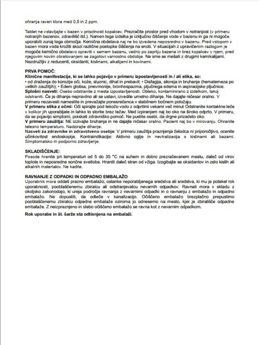 Izdelek služi za hitro uničevanje vseh elementov, kot so alge in organske bakterije, ter ponovno vzpostavitev pravilne in zdrave vode. Uporabniku bo torej omogočili nadaljevanje redne uporabe multifunkcijskih tablet, ki same po sebi ne bi bile več dovolj učinkovite.