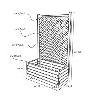 Leseno cvetlično korito z mrežasto oporo za rastline MARGHERITA 80x40x135 cm