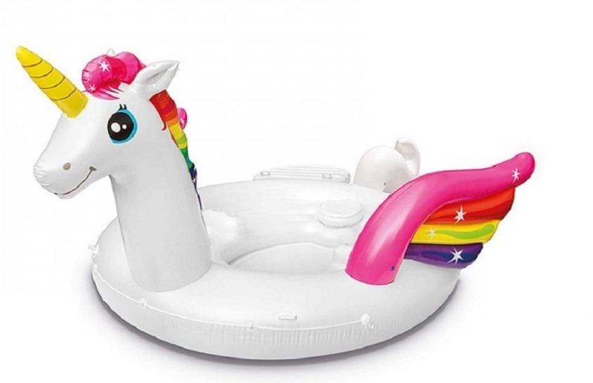 Napihljivi plavajoči nosilec pijače v obliki Samoroga.