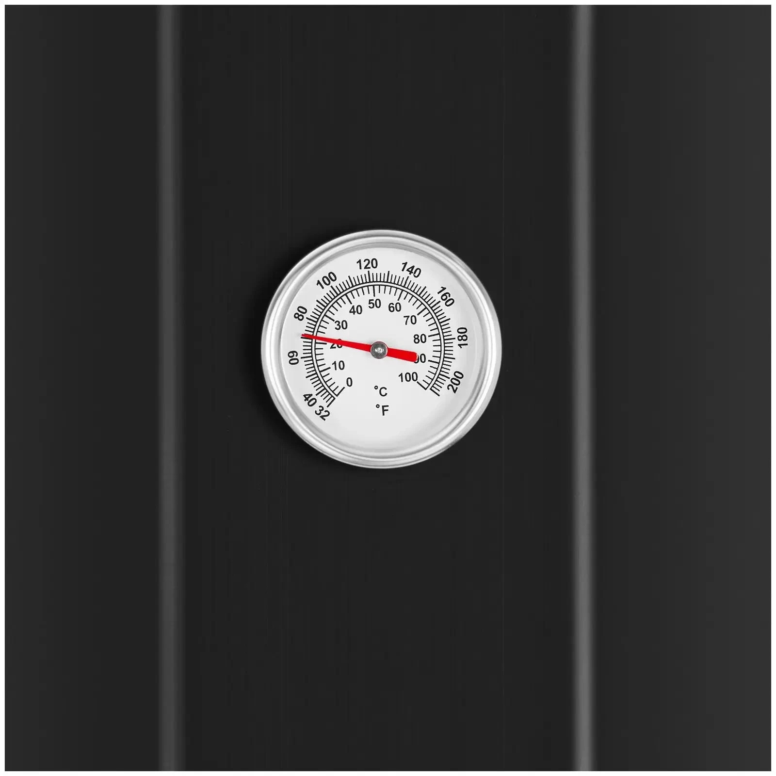 [URAVNAVANJE TEMPERATURE] S pomočjo mešalnika na telesu solarnega tuša lahko nastavite temperaturo vode glede na svoje potrebe. Z vrtenjem v levo (rdeča smer) dobite toplo vodo, z vrtenjem v desno (modra smer) pa hladno. Vgrajeni termometer prikazuje trenutno temperaturo vode.