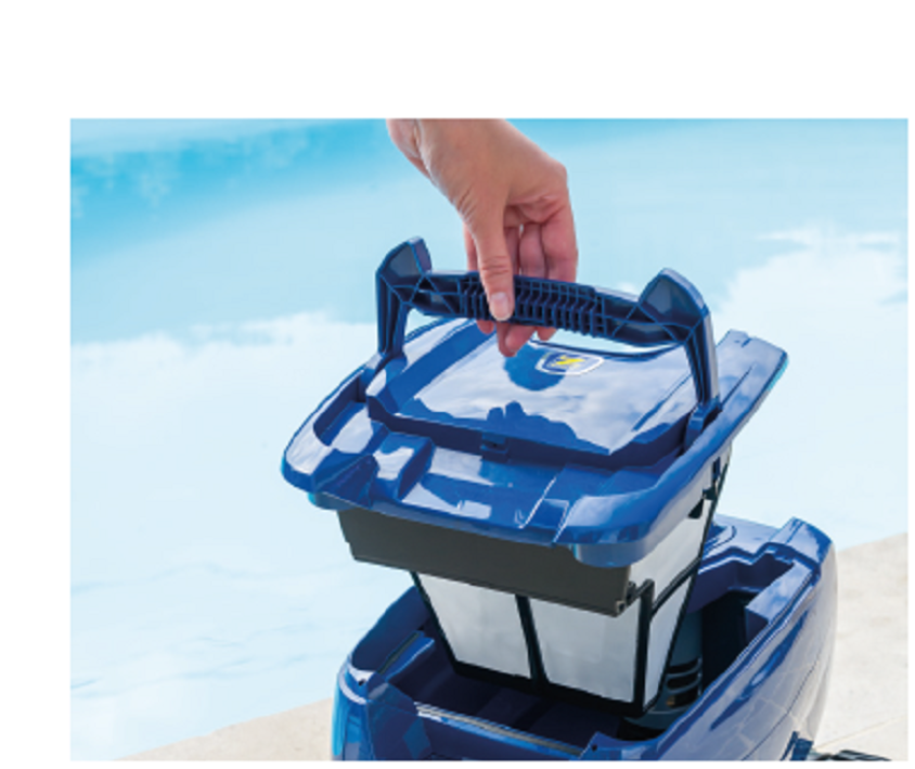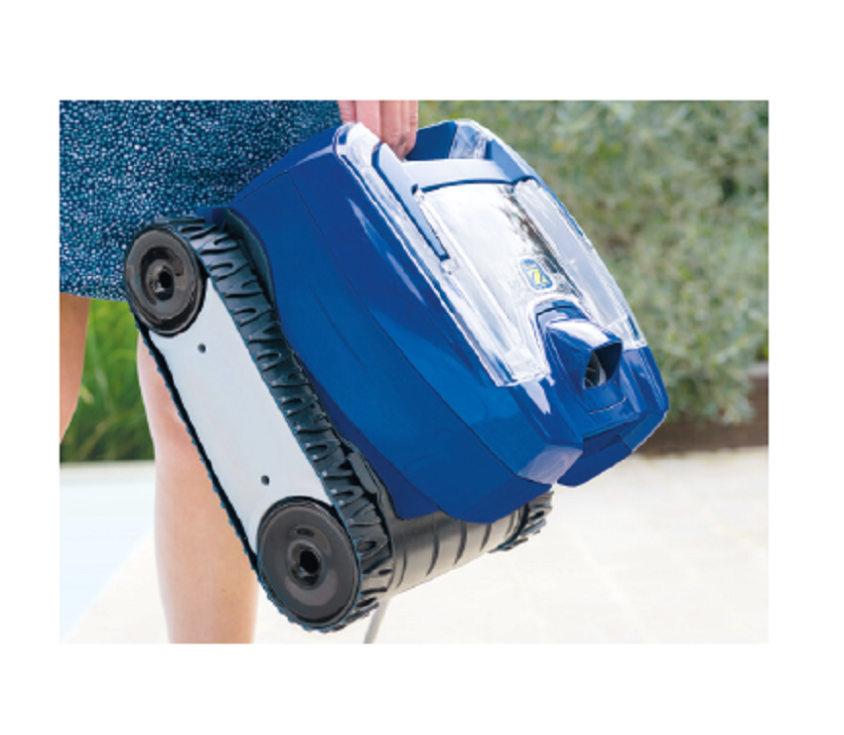Čistilec RT 2100 zagotavlja učinkovito čiščenje vašega bazena v popolni samostojnosti, zahvaljujoč inteligentnemu gibanju in vrteči se ščetki, ki odstrani vse odpadke in jih nato zbere v svoji posodi.